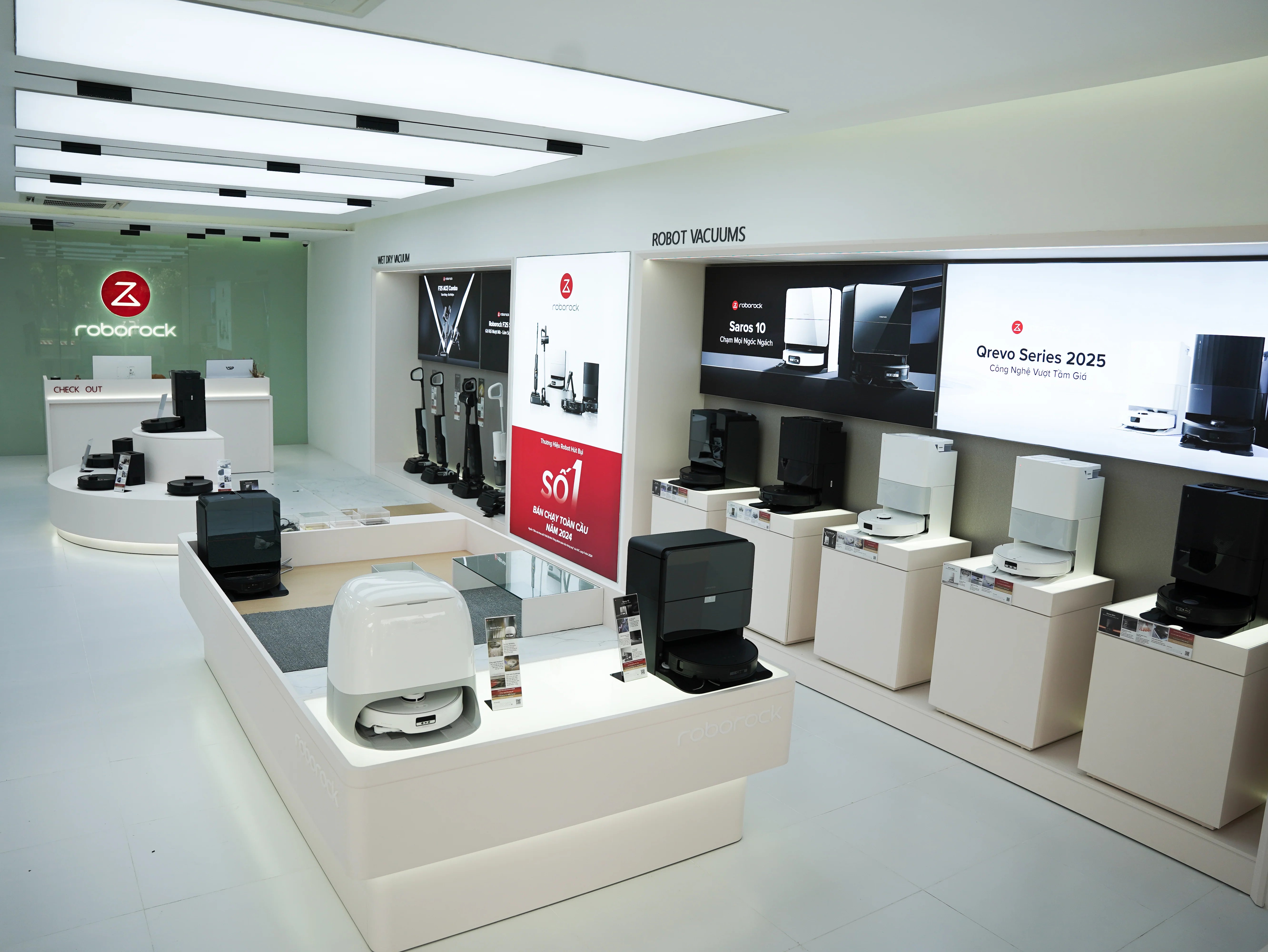 Tại đây, tất cả các dòng sản phẩm mới nhất của Roborock – từ robot hút bụi lau nhà thông minh, máy hút bụi cầm tay, máy hút bụi lau sàn đến hệ thống phụ kiện liên quan – đều được trưng bày và vận hành trực tiếp để khách hàng có thể quan sát hiệu quả làm sạch, kiểm tra chất lượng hút bụi và cảm nhận độ thông minh, linh hoạt của thiết bị.